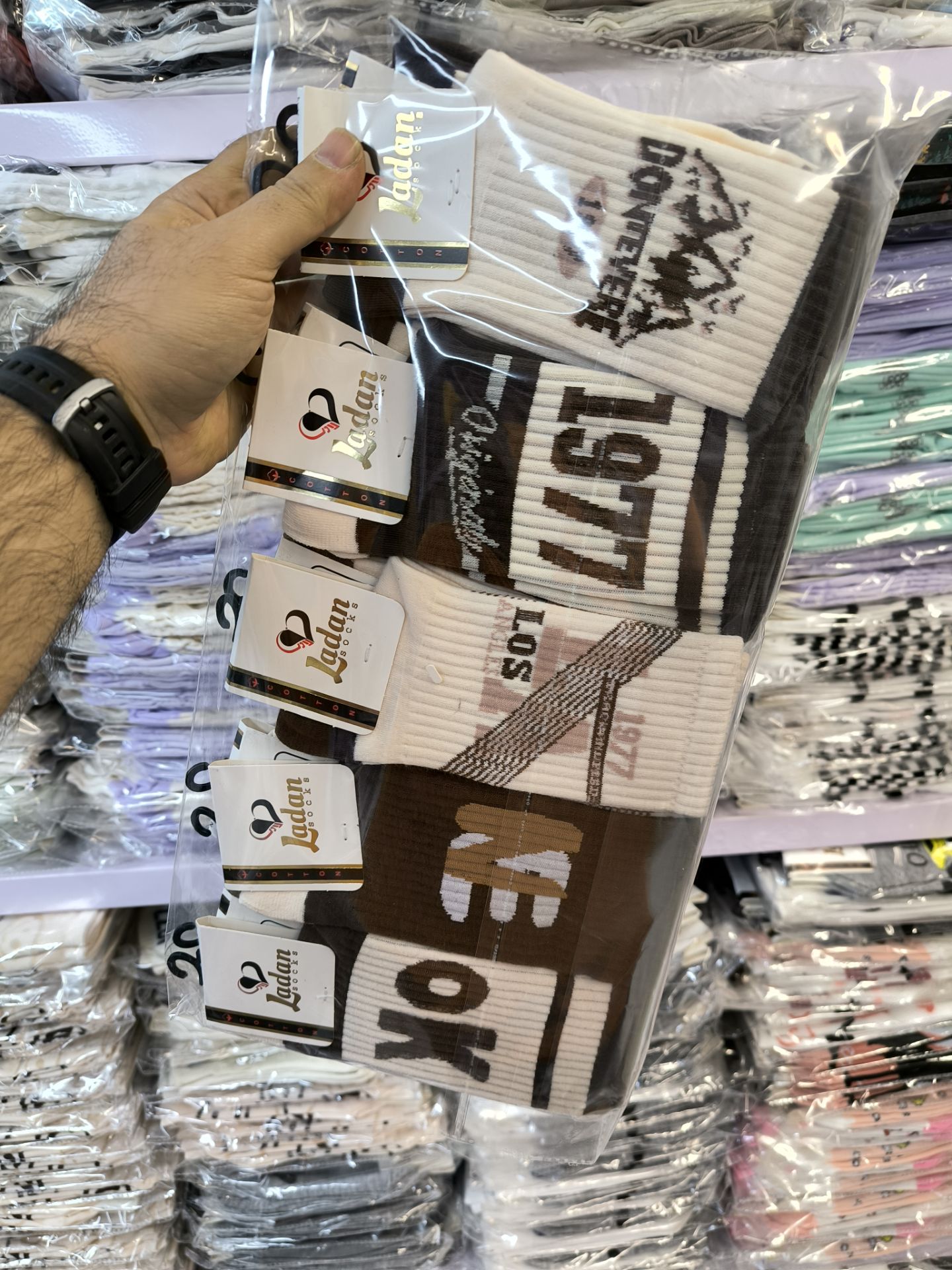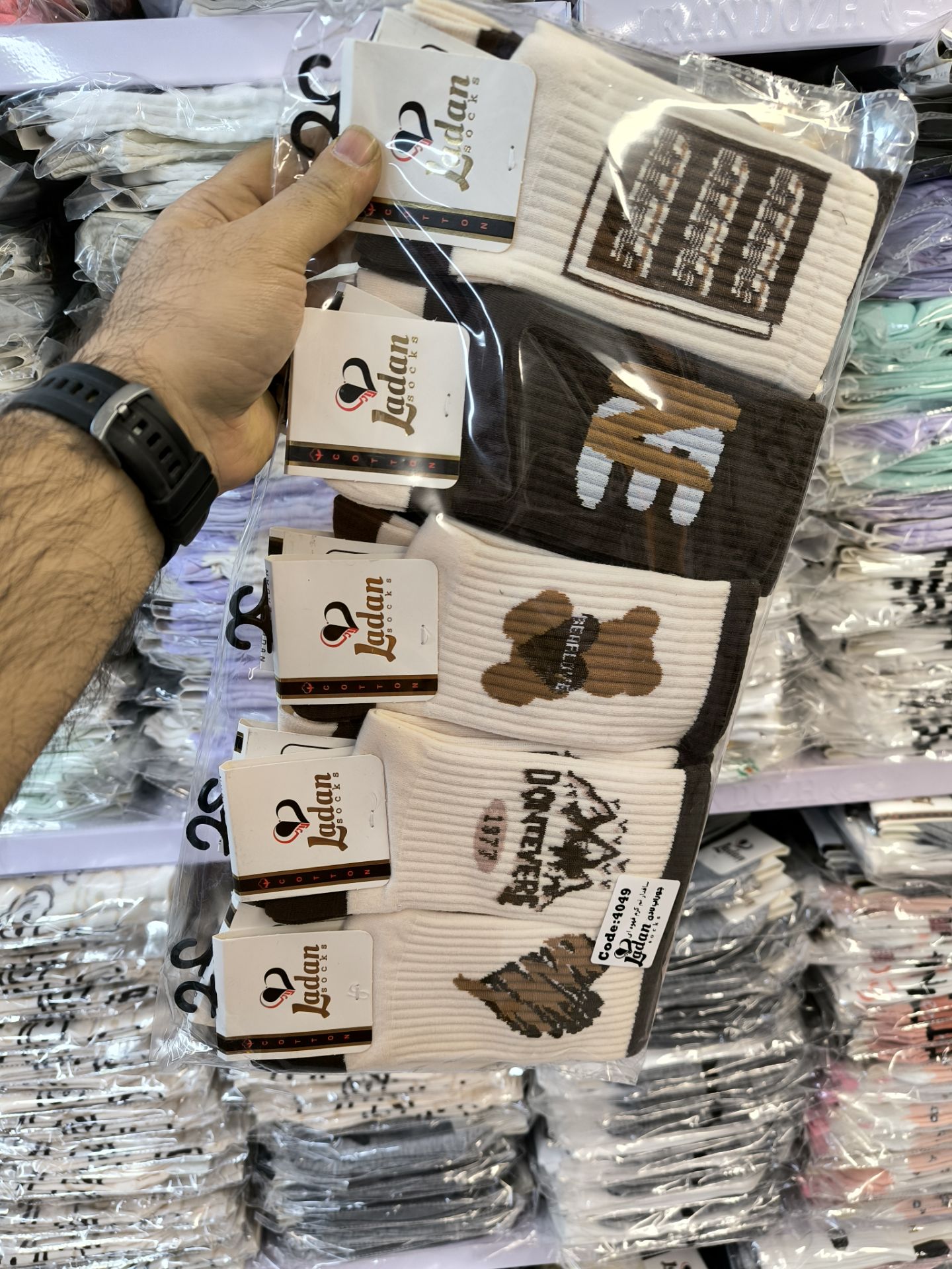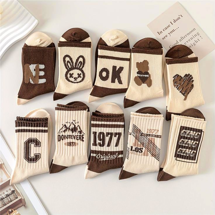 (10جفتی) جوراب ساقدار زنانه طرح ok تم کرم و قهوه ای کد 4049 لادن