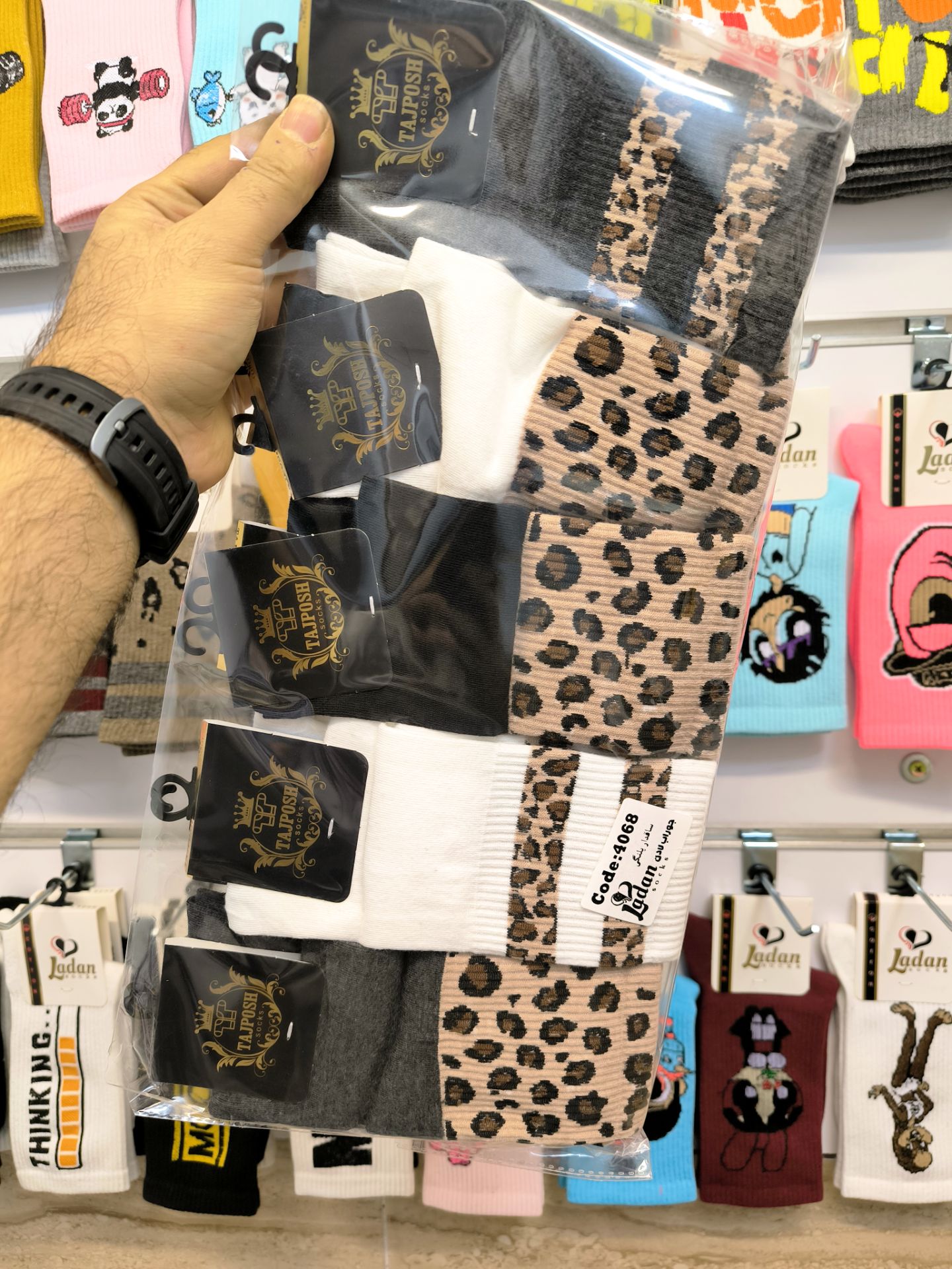 (10جفتی) جوراب ساقدار زنانه مچ پلنگی الوان کد 4068 تاج پوش