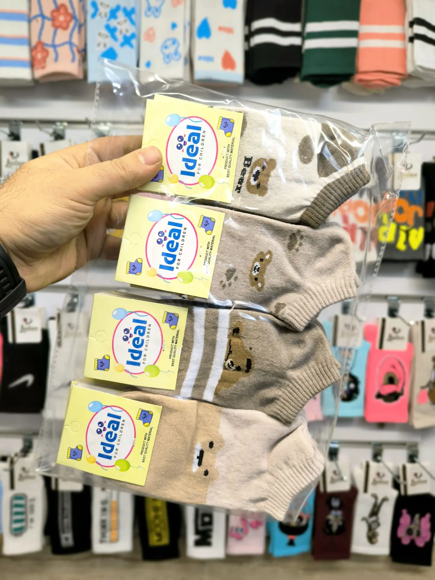 (12جفتی) جوراب مچی بچگانه 4 سایز خرس کرم جور ایده
