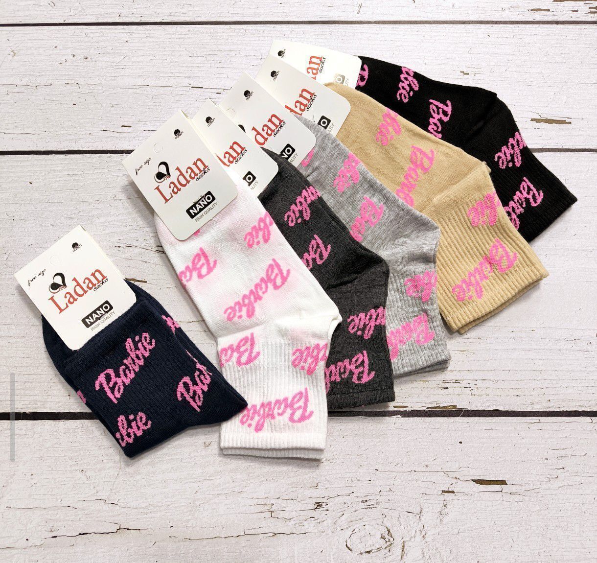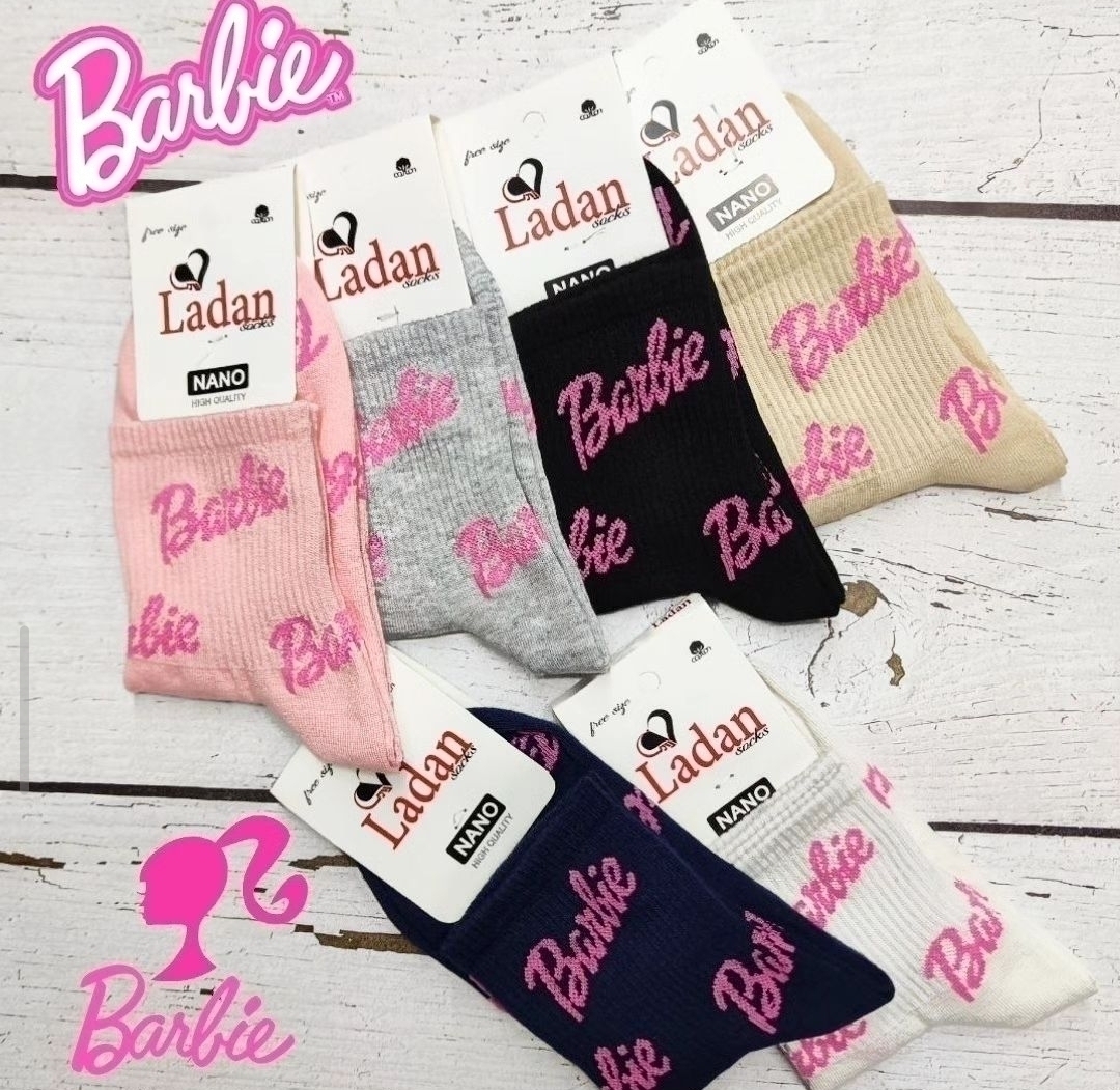 (۱۲جفتی) جوراب نیم ساق زنانه طرح باربی پر نوشته تعاونی کد 6013 لادن