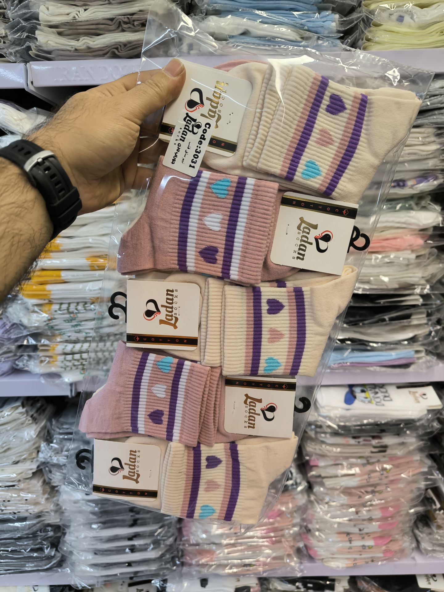 (۱0جفتی) جوراب نیم ساق زنانه طرح سه قلب کد 3031 لادن
