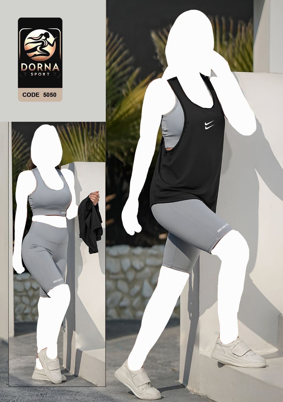 ( تک عددی ) ست نیمتنه شلوارک و کاور ورزشی زنانه طوسی کد 5050