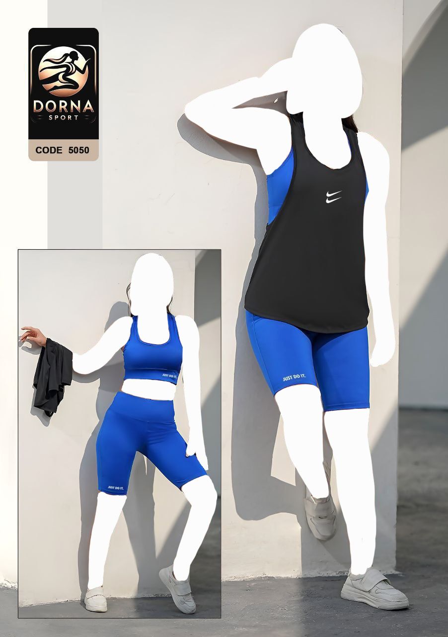 ( تک عددی ) ست نیمتنه شلوارک و کاور ورزشی زنانه کاربنی کد 5050